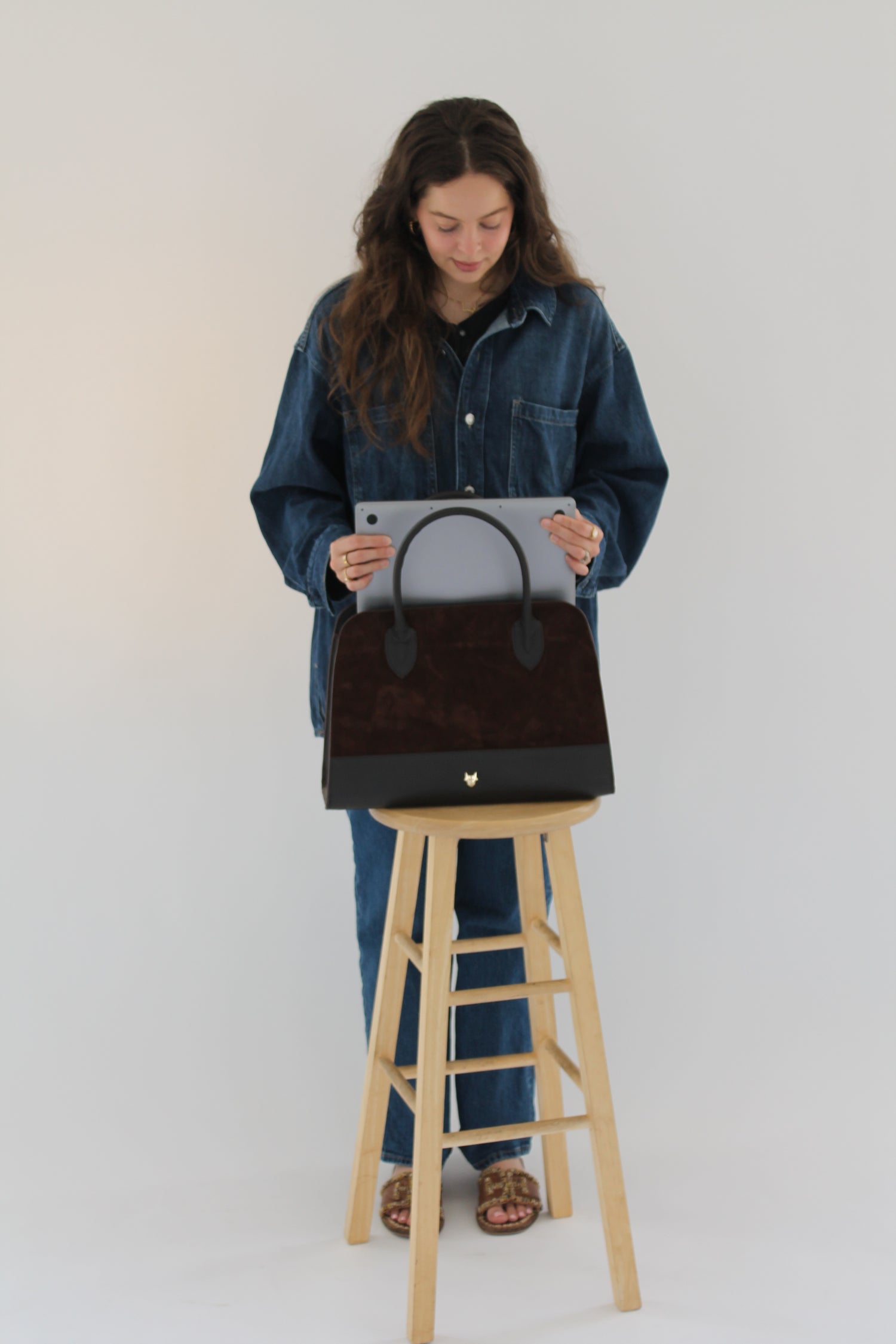 Timeless Leather Craftsmanship: Crafted from premium soft brow suede with full-grain leather base and handles